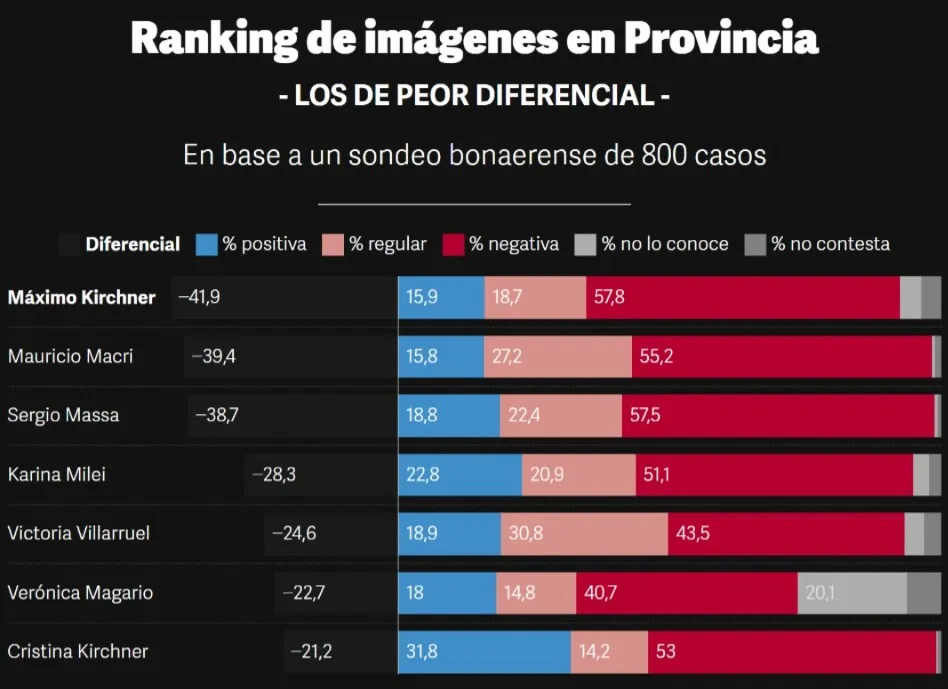 Encuesta bonaerense: 13 reprobados, libertario mejor que Milei; Macri cerca de Máximo K.